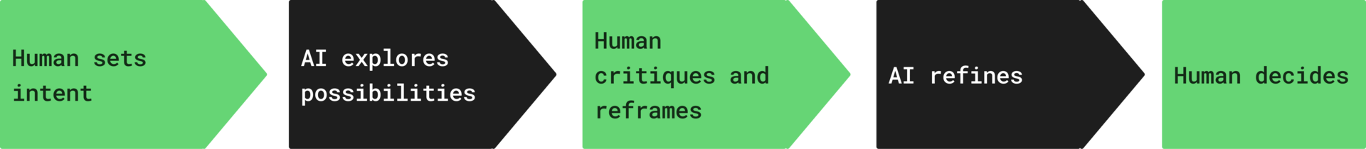Generate flows, content options, layouts, or research summaries.Human critiques and reframes
